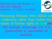 አሜሪካ ኢትዮጵያን ከአጎዋ ተጠቃሚነት ያስወጣችብትን ውሳኔ አጥብቃ ልታጤነው...